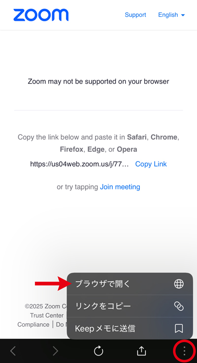右下の丸3本ラインから「ブラウザで開く」を選択します。